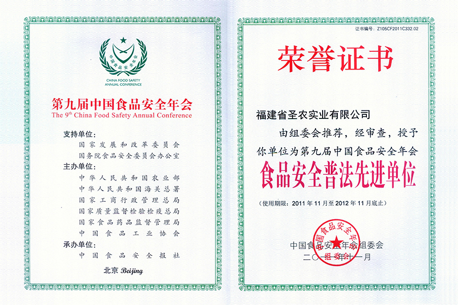 2021(圣農(nóng)集團(tuán))中國(guó)肉類食品行業(yè)先進(jìn)企業(yè)