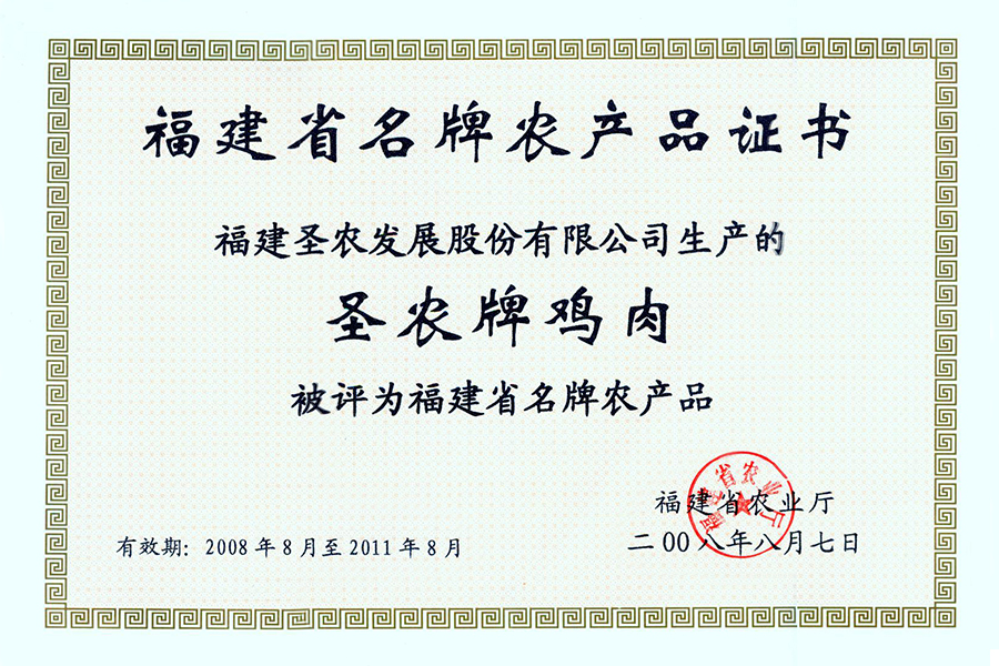 2008年福建省名牌家產(chǎn)品證書