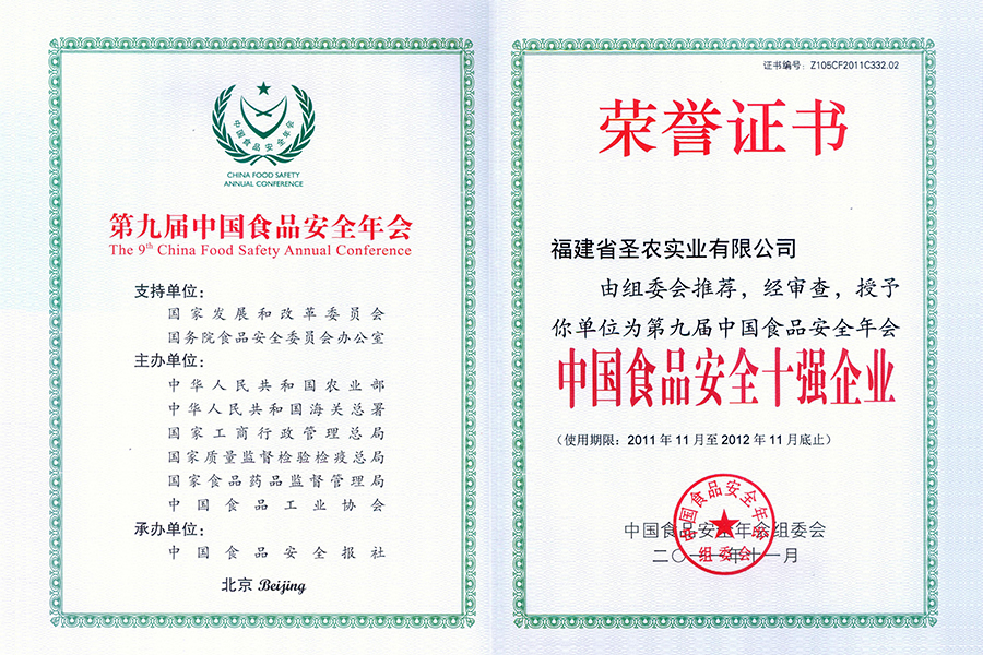 2011年中國(guó)食品安全十強(qiáng)企業(yè)