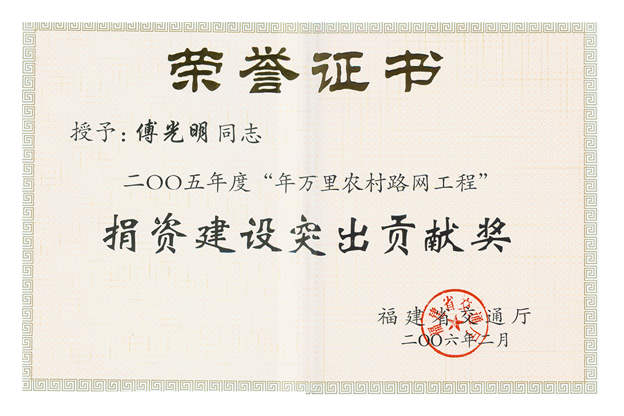 2005年度捐資建設(shè)突出貢獻(xiàn)獎(jiǎng)