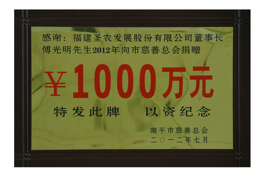 2012年向慈善總會(huì)捐贈(zèng)1000萬(wàn)元