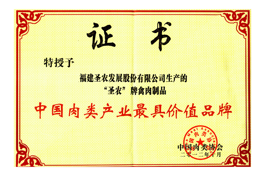 2021(圣農(nóng)集團(tuán))中國(guó)肉類食品行業(yè)——最具價(jià)值品牌