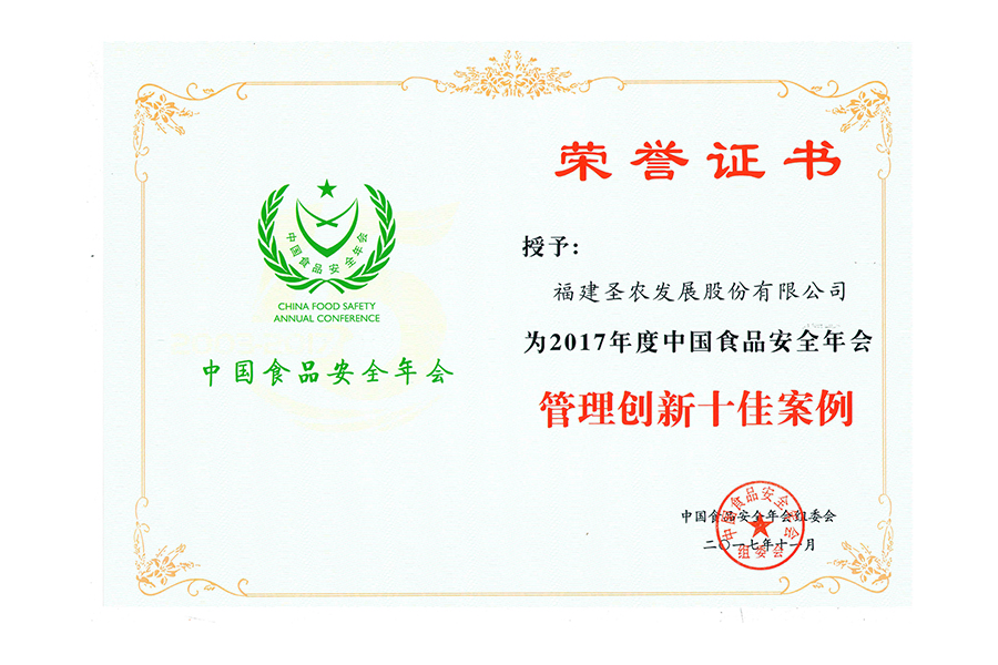 2017年中國(guó)食品安全年會(huì).管理創(chuàng)新十佳案例.