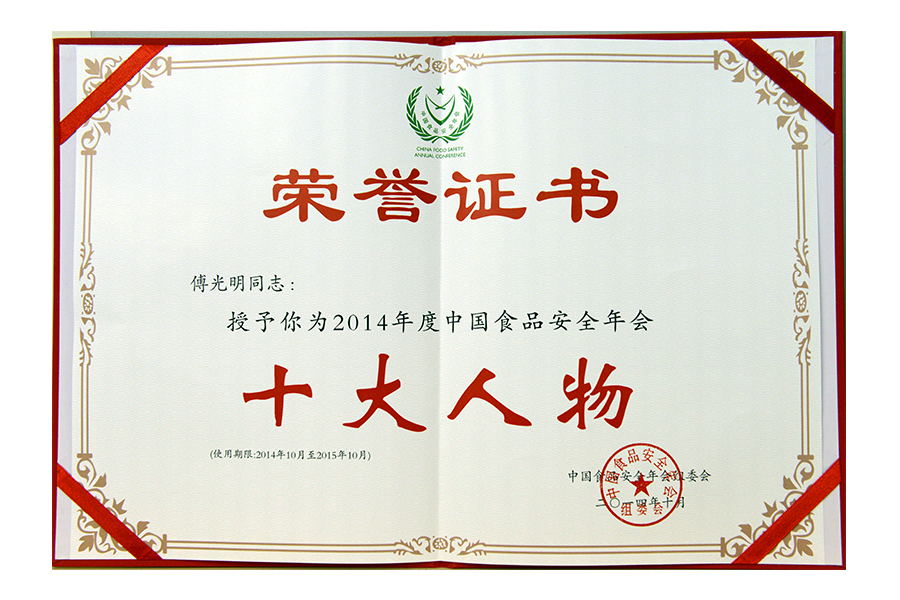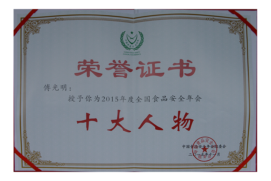 2017年(傅光明)中國(guó)食品安全年會(huì)安全管理十大人物