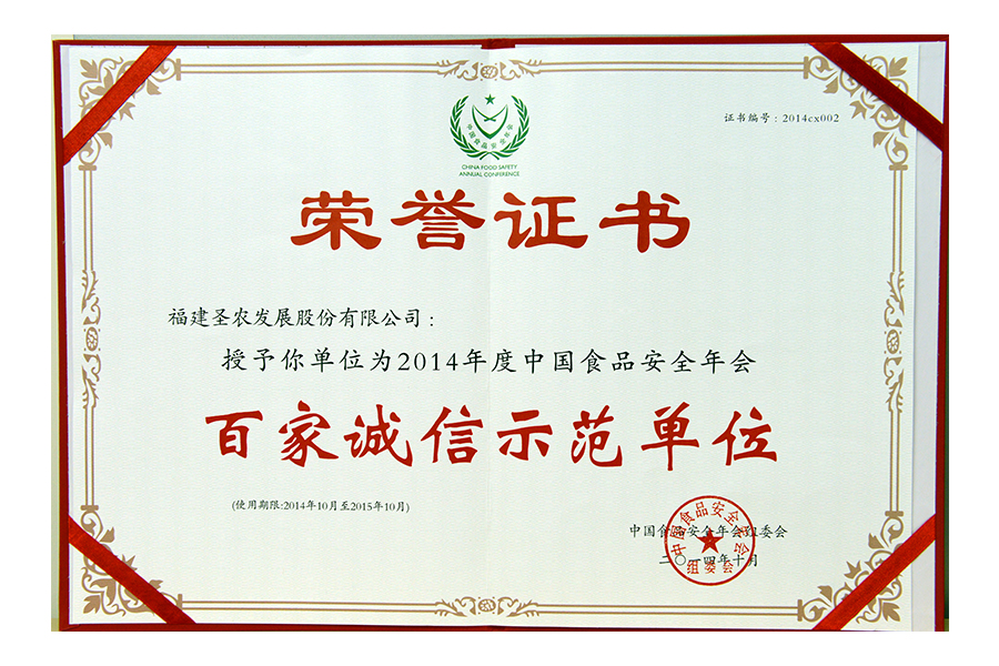 2016年中國(guó)食品安全年會(huì)百家誠(chéng)信示范單位