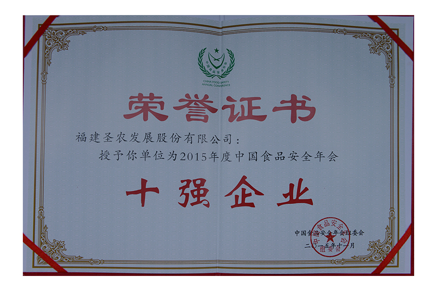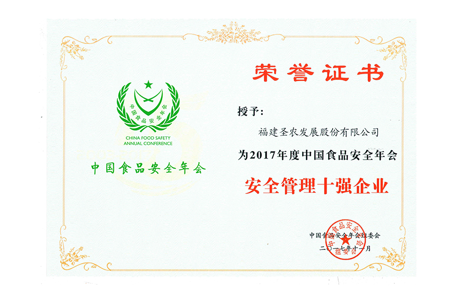 2017年中國(guó)食品安全年會(huì).安全管理十強(qiáng)企業(yè).證書