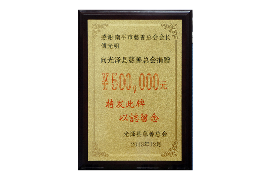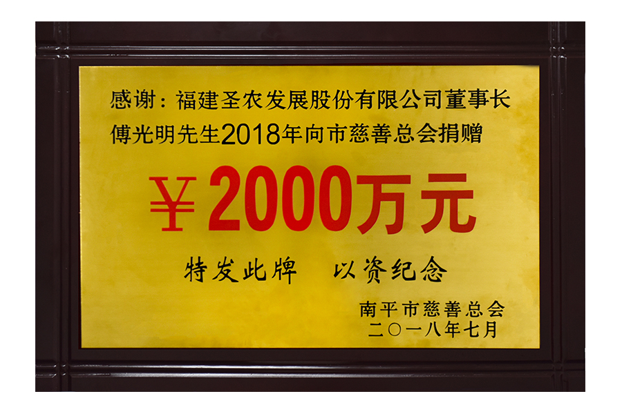2017年(傅光明)向南平市慈善總會(huì)捐贈(zèng)兩千萬(wàn)