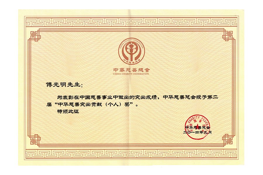 2014年(傅光明)中華慈善突出貢獻(xiàn)個(gè)人獎(jiǎng)