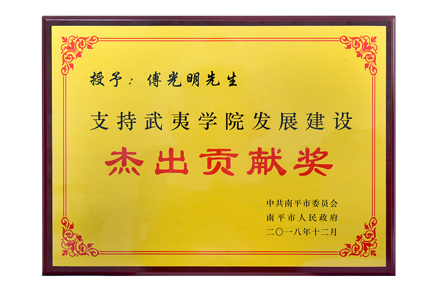 2018年傅光明支持武夷學(xué)院發(fā)展建設(shè)杰出貢獻(xiàn)獎(jiǎng)