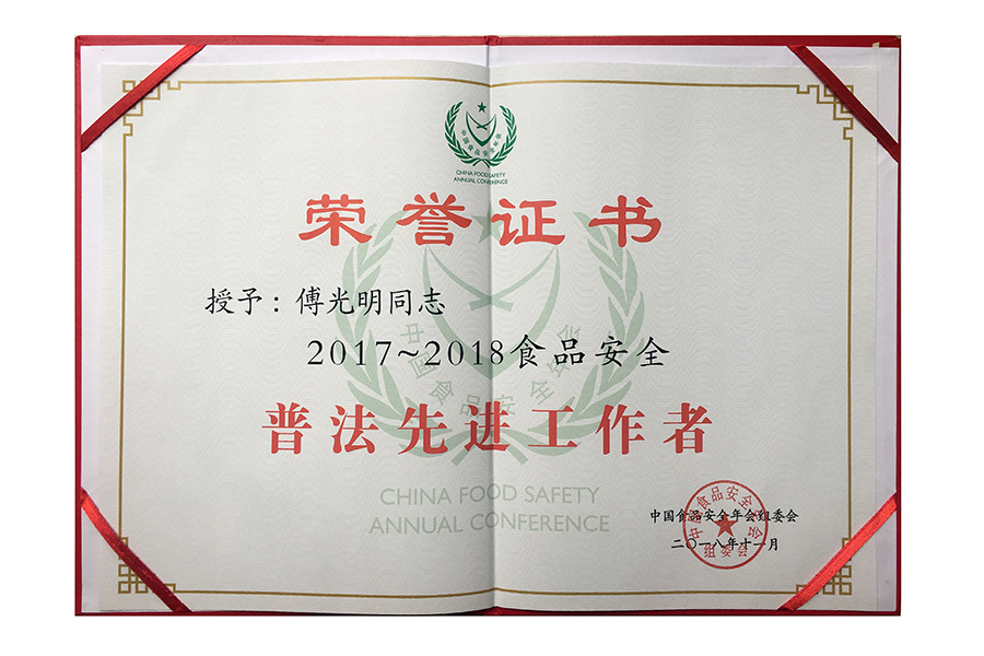 2018食安普法先進(jìn)工作者證書