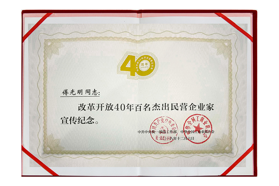 2018年傅光明改革開放40年百名杰出民營(yíng)企業(yè)家宣傳紀(jì)念