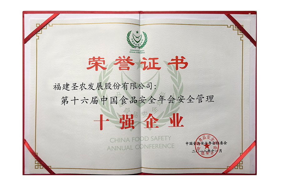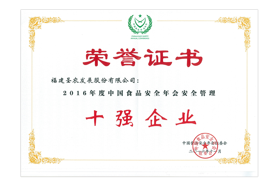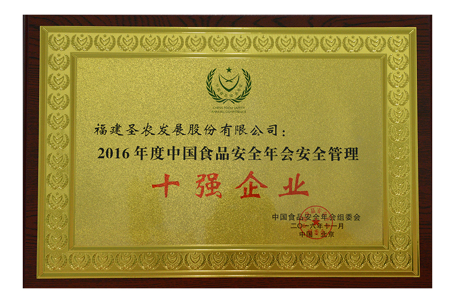 2016年中國(guó)食品安全年會(huì)安全管理十佳案例