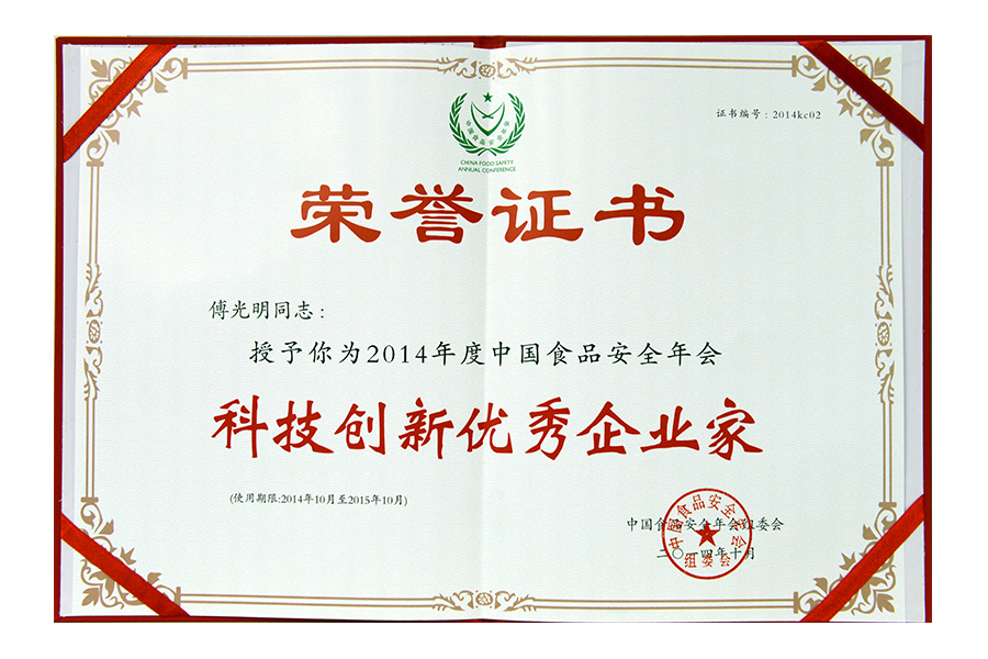 2014(傅光明)科技創(chuàng)新優(yōu)秀企業(yè)家證書