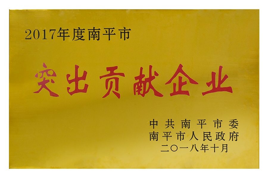 2018年10月-2017年度南平市突出貢獻(xiàn)企業(yè)