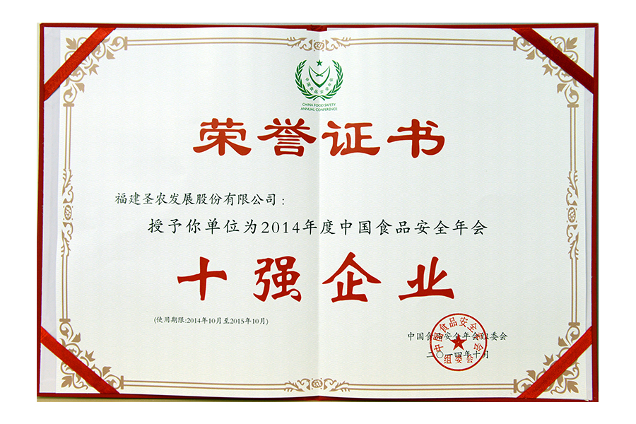2014年十強(qiáng)企業(yè)證書
