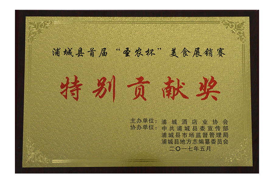 2017年浦城首屆“圣農(nóng)杯”美食展銷賽特別貢獻(xiàn)獎(jiǎng)
