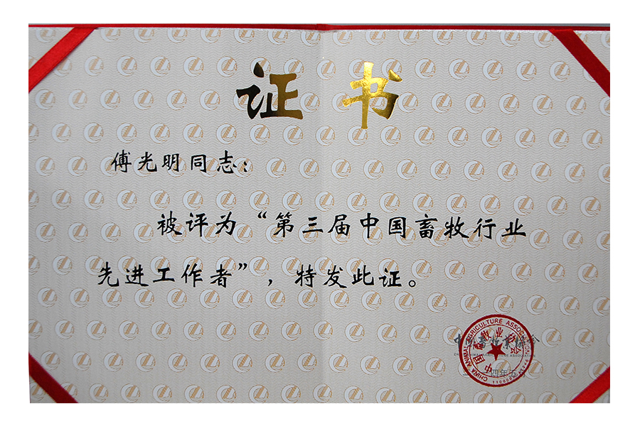 2014年(傅光明)第三屆中國(guó)畜牧行業(yè)先進(jìn)工作者