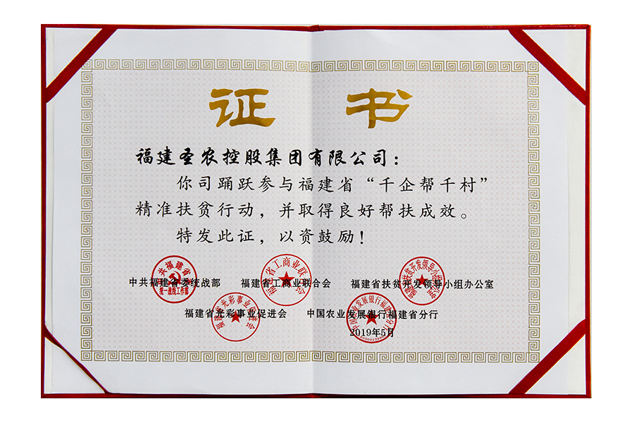 2019年福建圣農(nóng)控股集團(tuán)千企幫千村證書