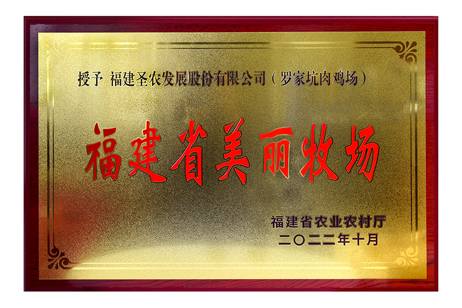 2023年福建農(nóng)業(yè)農(nóng)村廳授予圣農(nóng)發(fā)展(羅家坑肉雞場(chǎng))福建省美麗牧場(chǎng)牌匾