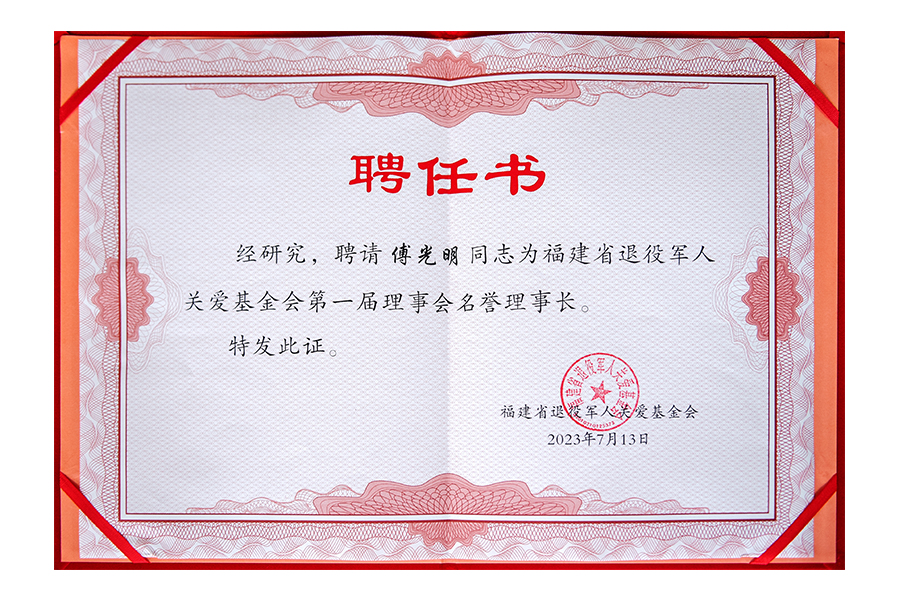 2023年福建省退役軍人關(guān)愛基金會(huì)第一屆理事會(huì)名譽(yù)理事長(zhǎng)