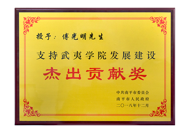 南平市委、市政府授予傅光明“支持武夷學(xué)院發(fā)展建設(shè)杰出貢獻(xiàn)獎(jiǎng)”,希望全市廣大企業(yè)家以傅光明為榜樣,深入學(xué)習(xí)貫徹習(xí)近平新時(shí)代中國(guó)特色社會(huì)主義思想和黨的十九大精神,大力弘揚(yáng)企業(yè)家精神,奮發(fā)有為、砥礪前行,為加快南平綠色發(fā)展推動(dòng)高質(zhì)量發(fā)展落實(shí)趕超作出積極貢獻(xiàn)。