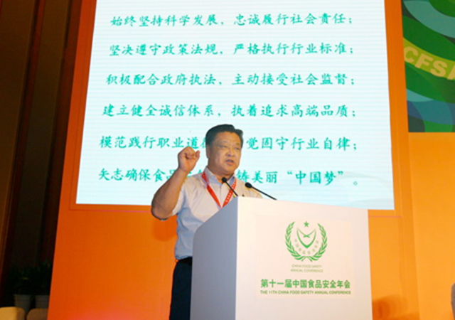 在15日的開(kāi)幕式上,全國(guó)政協(xié)副主席齊續(xù)春,十屆全國(guó)人大常委會(huì)副委員長(zhǎng)顧秀蓮等國(guó)家領(lǐng)導(dǎo)人、以及國(guó)務(wù)院相關(guān)部委辦局主管領(lǐng)導(dǎo)出席會(huì)議并分別作重要講話(huà),并為食品安全領(lǐng)域中做出杰出貢獻(xiàn)的全國(guó)食品安全十大企業(yè)家和十強(qiáng)企業(yè)頒發(fā)了獎(jiǎng)盤(pán)。傅光明董事長(zhǎng)從中國(guó)食品安全年會(huì)名譽(yù)主任顧秀蓮手中接過(guò)銀質(zhì)獎(jiǎng)盤(pán),獎(jiǎng)盤(pán)的光芒在臺(tái)上閃耀,一份沉甸甸的責(zé)任在手中緊握。傅光明董事長(zhǎng)會(huì)上還被大會(huì)組委會(huì)一致推薦為大會(huì)《2013食品安全宣言》領(lǐng)誓人,邀請(qǐng)他在主席臺(tái)上帶領(lǐng)企業(yè)代表共同宣誓。開(kāi)幕會(huì)結(jié)束后,參會(huì)領(lǐng)導(dǎo)共同參觀了與本屆年會(huì)一起舉辦的第九屆中國(guó)食品博覽會(huì)。
