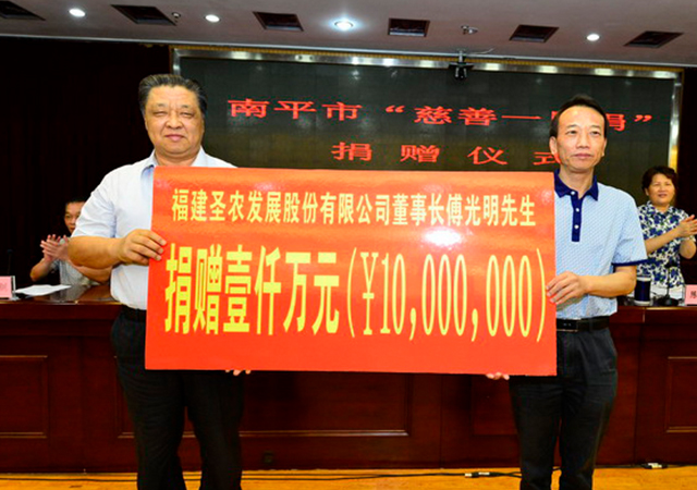 從最初的捐建“光澤縣希望小學(xué)”,到救災(zāi),再到汶川、玉樹(shù)地震捐款,可以說(shuō)每當(dāng)社會(huì)有災(zāi)難和不幸的事情發(fā)生,每當(dāng)有弱勢(shì)群體需要救助的時(shí)候,他都會(huì)義無(wú)反顧地慷慨解囊,向善而行的執(zhí)著匯集成溫暖社會(huì)的大愛(ài),凝聚成許許多多弱勢(shì)群體實(shí)現(xiàn)夢(mèng)想的力量。 20多年來(lái),他累計(jì)向慈善事業(yè)捐贈(zèng)超過(guò)17億元,成為南平市捐贈(zèng)金額最多的企業(yè)家,被南平市委、市政府授予“慈善家”稱號(hào)。 慈心濟(jì)貧拔苦,德高者行自遠(yuǎn)。他是中國(guó)白羽肉雞行業(yè)企業(yè)家社會(huì)參與意識(shí)和貢獻(xiàn)的珠峰,至今為止,鮮有人可以望其項(xiàng)背。 “作為一名共產(chǎn)黨員企業(yè)家,不單要辦好企業(yè) ,也要在履行社會(huì)責(zé)任的方方面面都走在前列。沒(méi)有全力去回報(bào)社會(huì)的黨員談對(duì)黨忠誠(chéng),是空話”。 2004年,集團(tuán)工農(nóng)業(yè)總產(chǎn)值首次突破10億元,此時(shí),不少人勸傅光明董事長(zhǎng)把總部遷移到大城市。