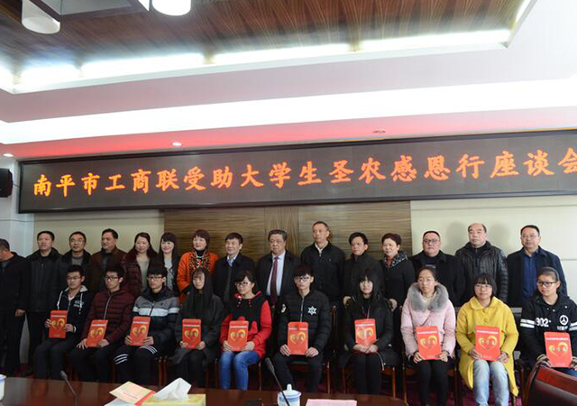 導讀:南平市工商聯(lián)受助大學生圣農(nóng)感恩行活動在圣農(nóng)集團總部舉行。市工商聯(lián)主席、福建圣農(nóng)發(fā)展股份有 限公司董事長傅光明向閩北十縣(市、區(qū))的10名貧困大學生發(fā)放助學金和新年紅包。